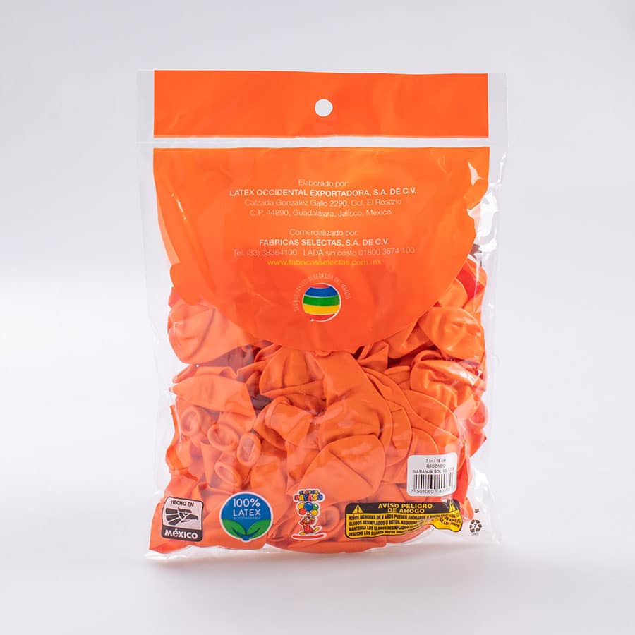El Globo Naranja Sol #7 Payaso 100 Pz esta elaborado con látex de la más alta calidad y es perfecto para poder realizar decoraciones en espacios para fiestas, aniversarios y reuniones; también son utilizados para elaborar decoraciones y figuras de globoflexia