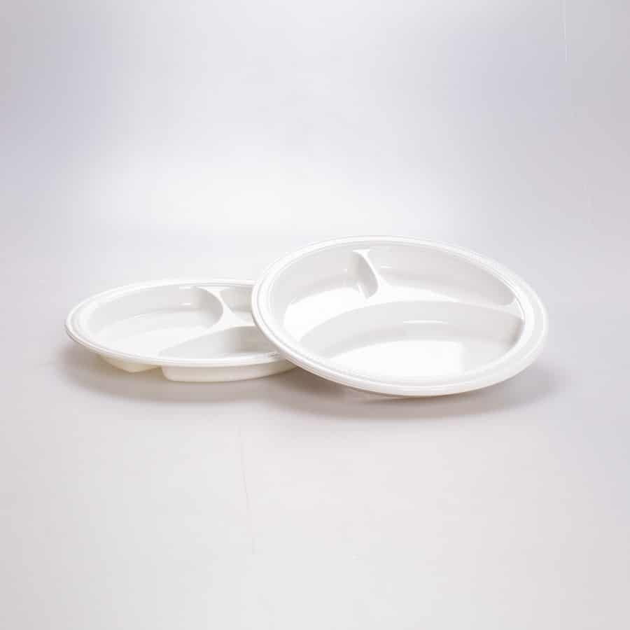 Plato 930 3 Divisiones Narsa 25 Pz elaborado con plástico, ideal para servir hasta 3 porciones distintas de alimentos evitando que estos se mezclen.